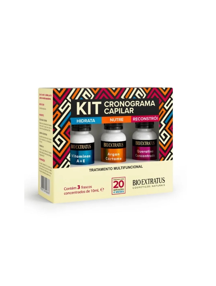 Cronograma Capilar é uma agenda de tratamento que alterna hidratação, nutrição e reconstrução, repondo a massa dos fios e todos os nutrientes perdidos. Graças aos ativos superconcentrados desse kit, com apenas 12 gotas misturadas à sua máscara preferida, você faz um tratamento intensivo, reparando todo tipo de dano.