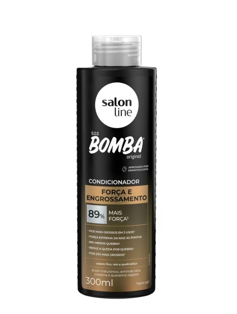 O Condicionador S.O.S Bomba Força e Engrossamento é ideal para quem busca fios mais grossos, cabelos encorpados, fortes, resistentes e com menos quebra. Possui eficiência comprovada com testes feitos em laboratório independente que garantem os resultados: 89% menos quebra dos fios, fios mais grossos a partir da terceira aplicação e redução de queda por quebra. O produto é dermatologicamente testado.