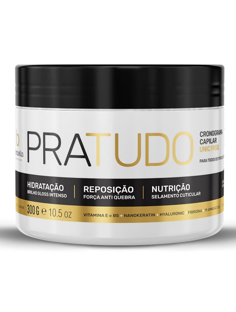 Modo de uso: Após lavar os cabelos com shampoo, aplique a Máscara Borabella Pratudo uniformemente, do comprimento às pontas. Deixe agir por alguns minutos e enxágue completamente.