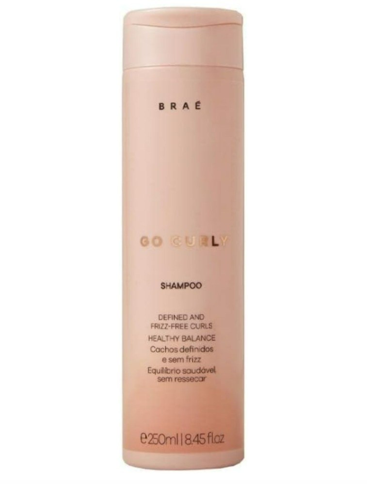 Shampoo multifuncional para cabelos cacheados ou ondulados. Braé Go Curly elimina resíduos sem ressecar os fios, deixando o couro cabeludo saudável e protegido.