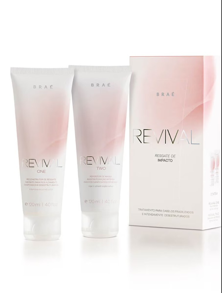 Kit de tratamento Braé Revival reestrutura as áreas danificadas dos fios para que fiquem mais fortes e saudáveis. Indicado para cabelos danificados e fragilizados.