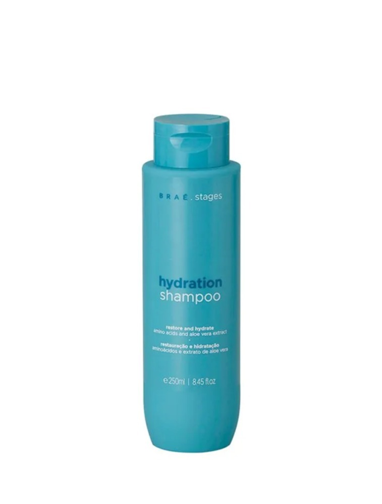 O BRAÉ Stages Hydration Shampoo limpa suavemente enquanto devolve hidratação e brilho aos cabelos secos e opacos. Enriquecido com aloe vera e aminoácidos, ele prepara os fios para receber os próximos tratamentos da linha, garantindo resultados incríveis desde o primeiro uso. Perfeito para quem busca um cabelo macio, solto e cheio de vida! Ativos Principais: Extrato de Aloe Vera: ingrediente natural conhecido por suas propriedades altamente hidratantes. Ajuda a reter a umidade no fio, proporcionando maciez e brilho duradouro; Aminoácidos: promovem a restauração completa da fibra capilar, deixando os cabelos mais fortes, alinhados e com aspecto saudável. Principais Benefícios: • Hidratação profunda para cabelos ressecados; • Devolve maciez e brilho aos fios; • Prepara os cabelos para os tratamentos da linha Stages Hydration. Modo de uso: 1. Aplique o shampoo nos cabelos molhados e massageie o couro cabeludo até formar espuma; 2. Enxágue completamente; 3. Repita a aplicação se sentir necessidade para uma limpeza mais intensa