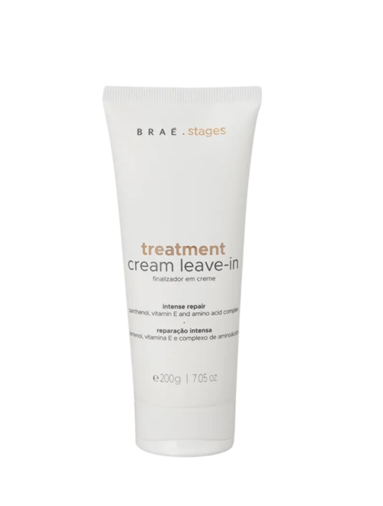 O BRAÉ Stages Treatment Cream Leave-In é o seu novo parceiro para uma nutrição intensa e reparação profunda dos fios. Indicado para cabelos médios a grossos, sua fórmula em creme age diretamente nas áreas mais danificadas, restaurando a saúde da fibra capilar e trazendo brilho imediato. Perfeito para combater frizz, pontas duplas e proteger contra danos térmicos, ele deixa seus cabelos macios, nutridos e prontos para arrasar no dia a dia! Ativos principais: Complexo de Aminoácidos: proporciona nutrição e reparação intensa para a saúde capilar, atuando nas áreas danificadas e devolvendo o brilho e a vitalidade aos fios. Pantenol combinado com a Vitamina E: hidrata os cabelos profundamente, mantendo-os macios e protegidos contra pontas duplas por longos períodos. Principais Benefícios: • Nutrição intensa e reparação das áreas danificadas; • Proteção térmica para cabelos expostos ao calor; • Redução do frizz e prevenção de pontas duplas; • Brilho e maciez instantâneos. Modo de uso: 1. Aplique nos cabelos secos ou úmidos, concentrando o produto nas pontas e no comprimento, evitando a raiz; 2. Espalhe de maneira uniforme com as mãos ou com um pente de dentes largos; 3. Não é necessário enxaguar; 4. Finalize como preferir, seja ao natural ou com ferramentas de calor.