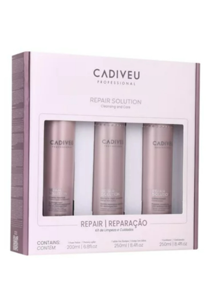 Esse Kit Homecare Repair Solution Proteína + Shampoo + Condicionador da Cadiveu Professional é a solução perfeita para reparar os danos dos cabelos danificados. Com sua poderosa fórmula RESET PRO, ele restaura a hidratação, nutrição e reconstrução dos fios, deixando-os até 5 vezes mais fortes*. Os resultados são visíveis logo após o primeiro uso!
