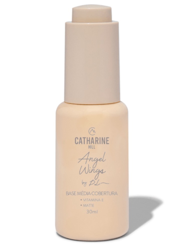 A Base de média cobertura da marca brasileira Catharine Hill contém acabamento matte, Oil Free e é resistente a água, possui textura macia, toque aveludado e acabamento natural, garantindo uma make leve e fantástica. Com longa duração na pele, ela foi elaborada com ácido hialurônico, Vitamina E e é vegana. Indicada para todos os tipos de pele.