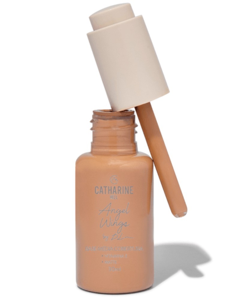 A Base de média cobertura da marca brasileira Catharine Hill contém acabamento matte, Oil Free e é resistente a água, possui textura macia, toque aveludado e acabamento natural, garantindo uma make leve e fantástica. Com longa duração na pele, ela foi elaborada com ácido hialurônico, Vitamina E e é vegana. Indicada para todos os tipos de pele.
