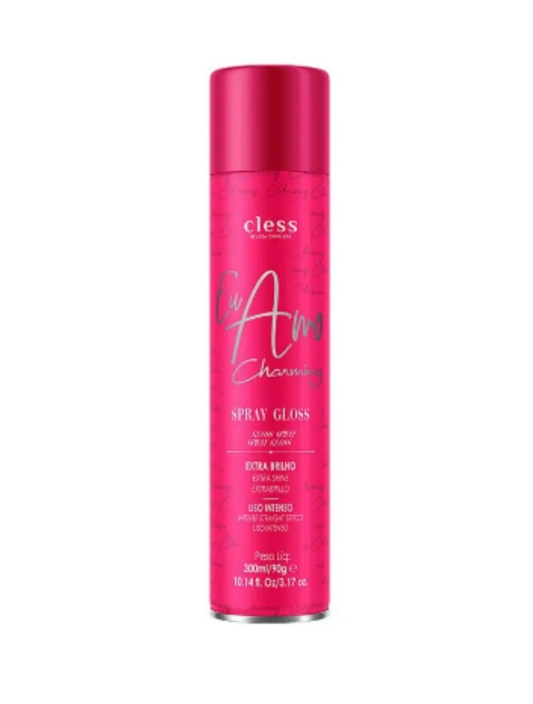 O Spray de Brilho Gloss Eu Amo Charming, é um reparador de pontas em aerossol, que desembaraça, sela a cutícula , facilita o deslizamento da escova e chapinha, intensifica o efeito liso e potencializa o brilho . O Spray de Brilho Gloss atua como protetor térmico que preserva os fios do calor do secador e da chapinha/prancha. Enriquecido com a tecnologia exclusiva Film Gloss® que forma uma fina película que alinha as camadas dos fios deixando o cabelo uniforme, mais brilhante e sem Frizz .