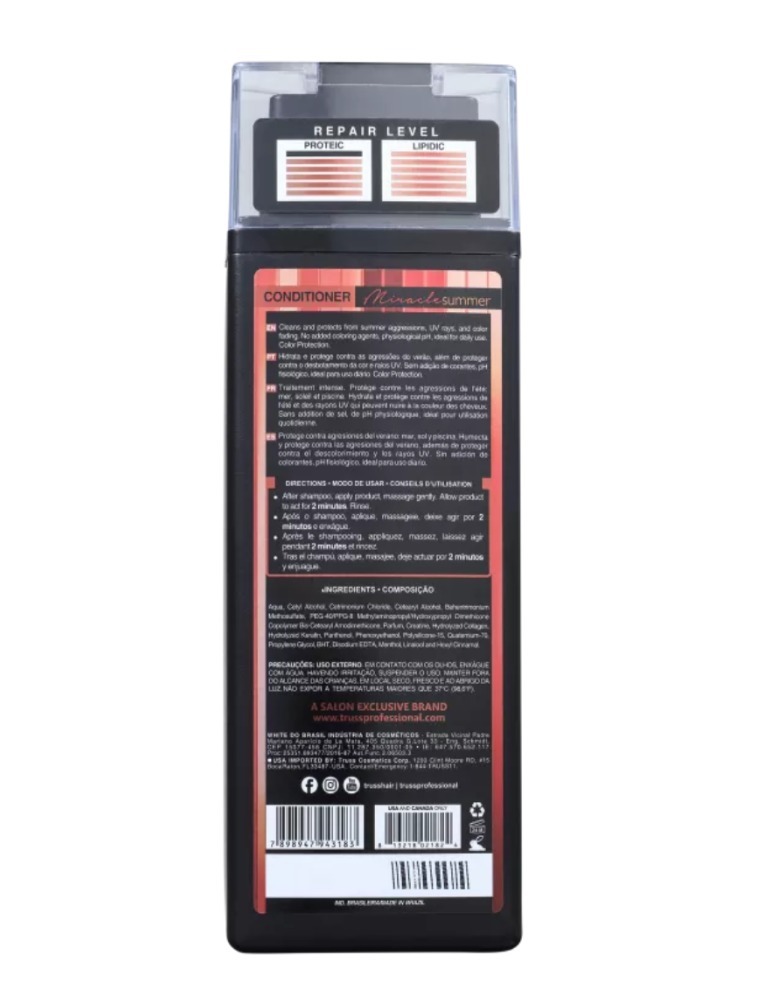 O Condicionador Miracle Summer TRUSS é a escolha perfeita para quem busca um cuidado capilar completo durante a estação mais quente do ano, garantindo cabelos saudáveis, protegidos e com aspecto radiante.