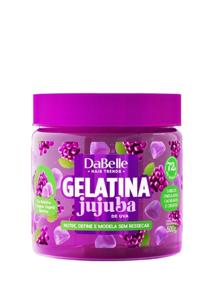 A Gelatina Jujuba de Uva traz nutrição poderosa para cabelos ondulados, cacheados e crespos.