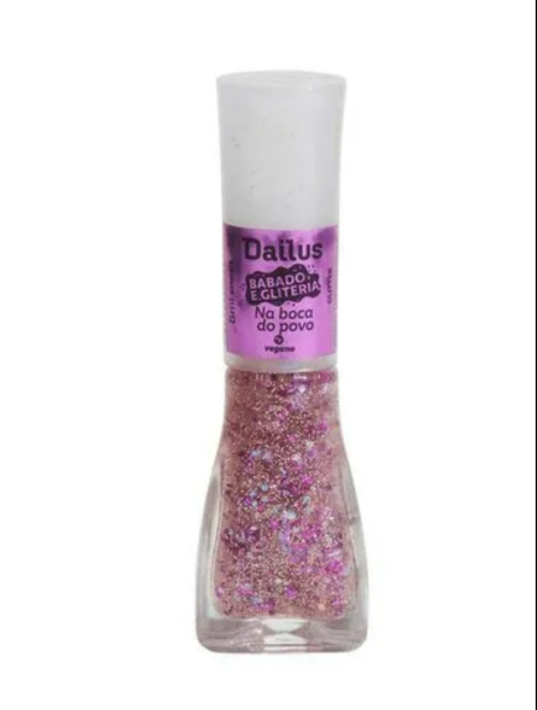 Atura ou surta: com esse esmalte da nossa coleção BABADO E GLITERIA, você vai ficar NA BOCA DO POVO! O lançamento, que promete ser sucesso no Carnaval, tem diferentes partículas de brilho multicolorido e holográfico, em tons de rosa e prata, e um fundo de glitter dourado. Chique demais!