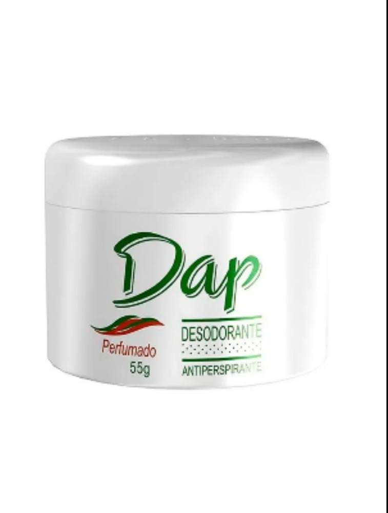 Desodorante em creme. Dap Perfumado conta com ação antiperspirante, protege a pele sem engordurar as mãos nem manchar as roupas.