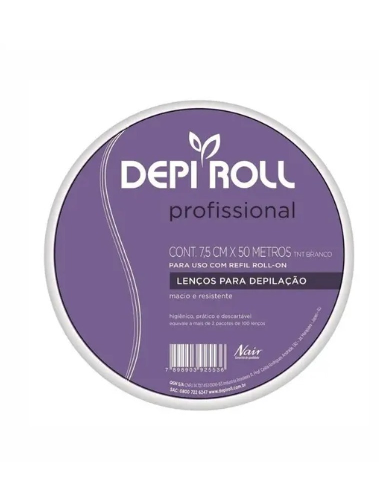 Depi Roll Lenço Para Depilação Rolo 50m Branco É UM lenço descartável para depilação é produto ideal para remover resíduos de cera da pele durante e após a depilação.