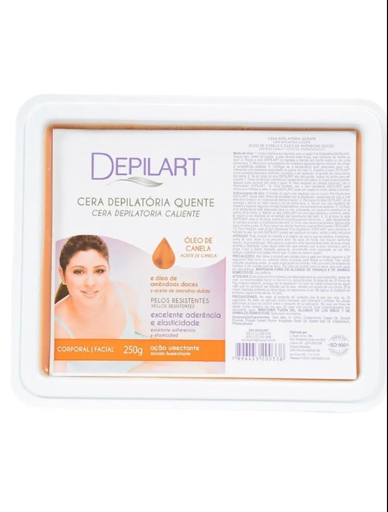 Modo de usar: Limpe o local a ser depilado com a loção Pré-Depilatória Depilart. Seque bem. Antes de depilar a pele deverá estar limpa, sem resíduo de creme ou suor. Retire a cera da bandeja e derreta em banho maria ou em uma termo-cera, mecha com uma espátula de madeira e aguarde alguns minutos até atingir uma consistência pastosa, verifique se a temperatura esta adequada para uso, colocando uma pequena quantidade na mão. Espalhe a cera Depilart em uma camada espessa e uniforme, na região a ser depilada, no sentido do crescimento do pelo. Se ao tocar na cera ela não grudar, estará no ponto a ser puxada. Puxe na direção contrária o crescimento dos pelos. Caso a cera quebre aplique outra camada fina por cima e puxe novamente. Para remover os últimos resíduos, use o Removedor Depilart. Para finalizar utilize o Gel Hidratante Depilart, para refrescar e hidratar a pele. Pode ser usada em Rosto, Axilas e pernas.