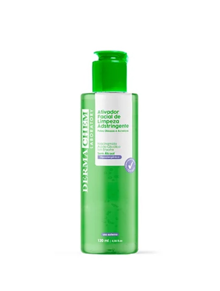 O Ativador Facial de Limpeza Adstringente Dermachem Laboratory, foi desenvolvido para uma ação funcional com a mistura dos ativos Niacinamida, Ácido Glicólico e Íons Enxofre. Uma formulação aquosa, livre de álcool, que revitaliza a pele, remove os excessos de oleosidade e impurezas do dia a dia, deixando-a preparada para receber maquiagem ou tratamento. Além disso, deixa sensação de refrescância, pele renovada com frescor e suavidade.