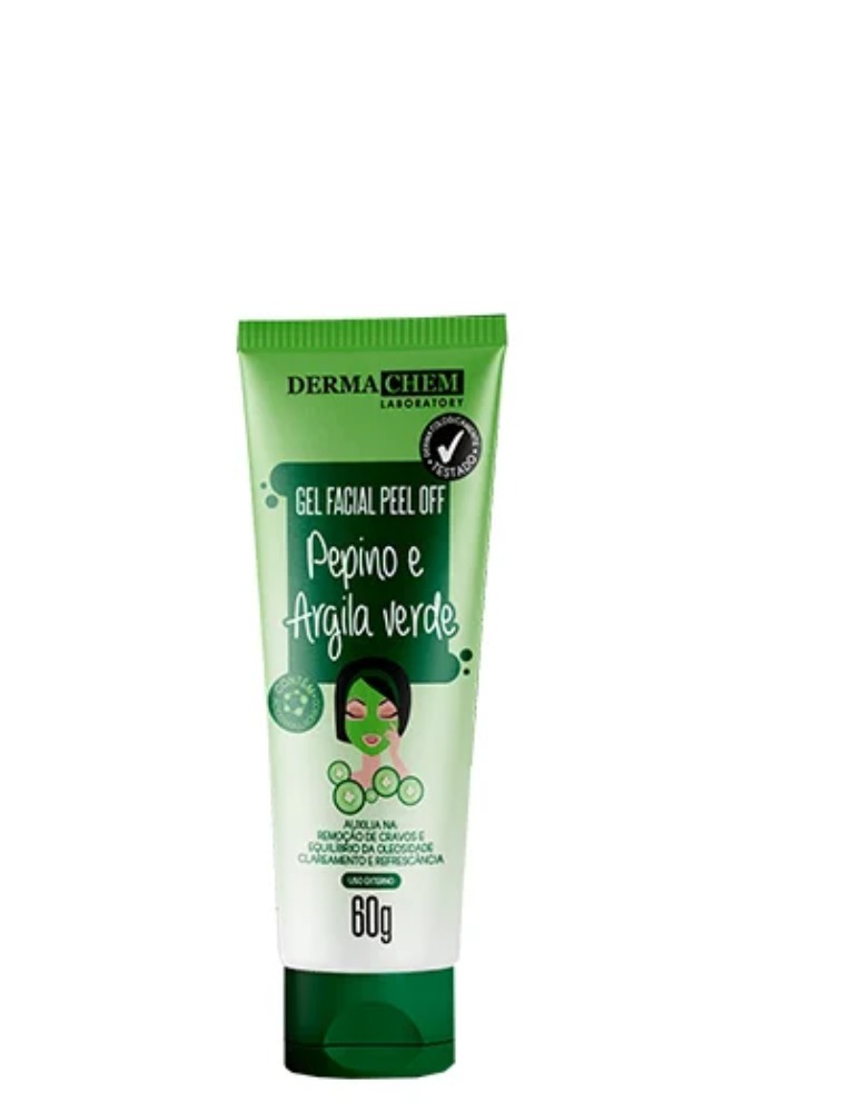 O Gel facial peel off Pepino e Argila Verde Dermachem Laboratory possui ativos que, associados ao ácido hialurônico, extrato de pepino e argila verde, auxiliam na remoção de cravos, limpando, hidratando, revitalizando a pele e no equilíbrio da oleosidade, promovendo ainda refrescância e adstringência na pele.