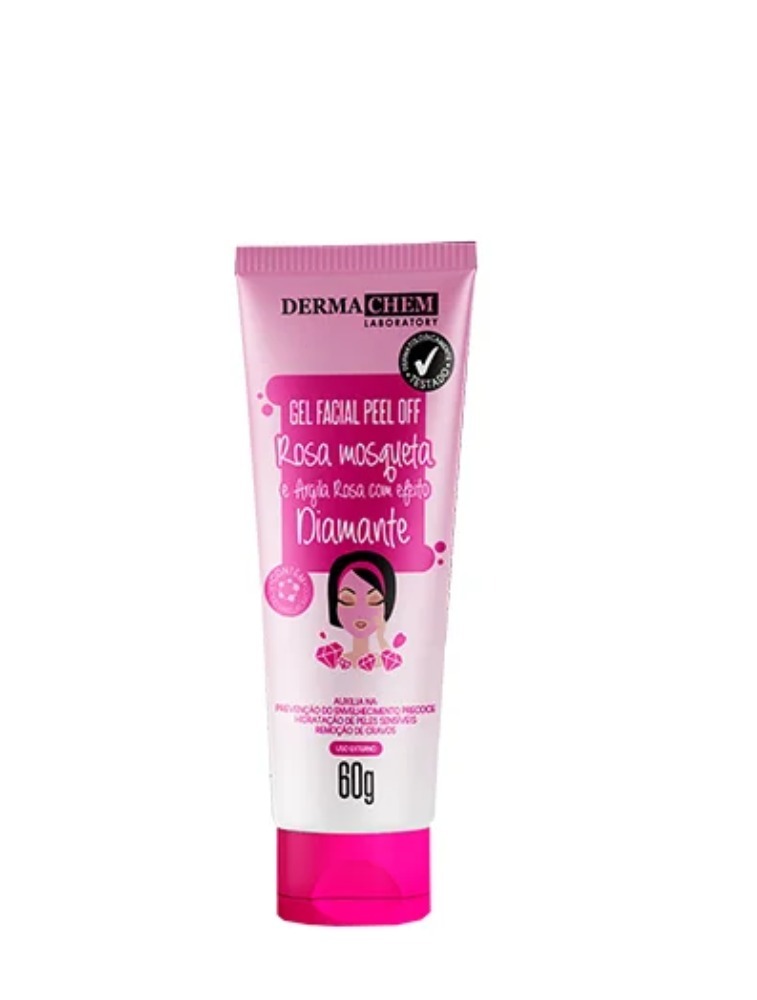O Gel Facial Peel Off Rosa Mosqueta e Argila Rosa com Efeito Diamante da Dermachem Laboratory possui ativos que, associados ao ácido hialurônico, argila rosa e óleo de rosa mosqueta, auxiliam na remoção de cravos, hidratam peles sensíveis e ajudam na prevenção do envelhecimento precoce e na revitalização da pele.