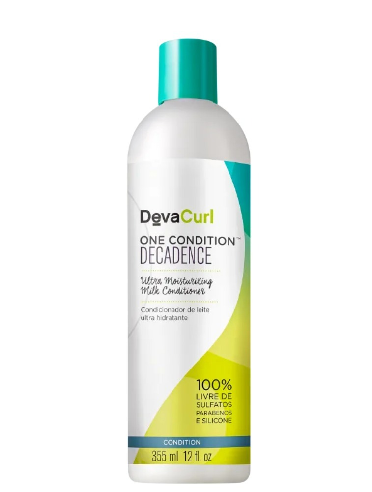 Condicionador hidratante para cabelo cacheado e crespo. Deva Curl One Condition Decadence devolve a hidratação natural enquanto aumenta a resistência e protege os fios. Cachos modelados, mais macios e com brilho.