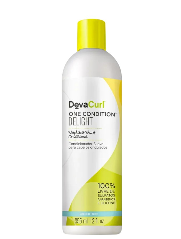 Condicionador suave para cabelos e ondulados. Deva Curl One Condition Delight hidrata, combate o frizz, desembaraça e define as ondas por mais tempo.