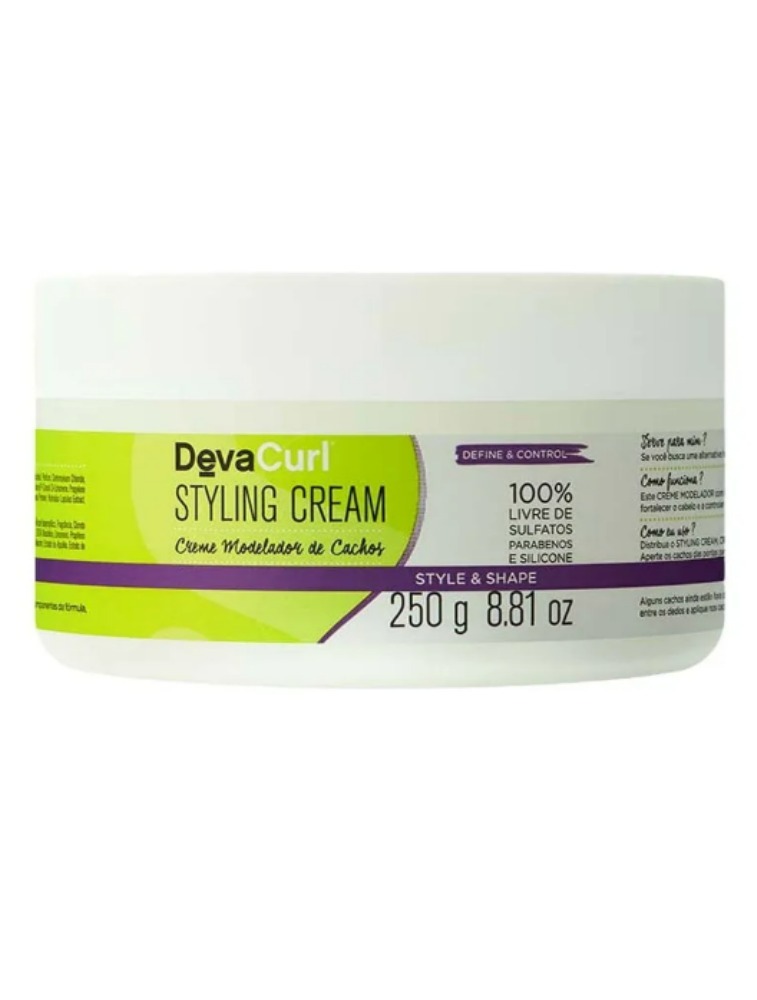 Creme Estilizador Styling Cream da Deva Curl é um creme modelador de condicionamento máximo. Formulado com ingredientes botânicos que condicionam, realçam e definem os cachos. Indicação: • Todos os Tipos de Cabelos Cacheados; • Cabelos Secos • Cabelos Danificados • Cabelos Rebeldes. O Styling Cream proporciona uma fixação natural e resistente a umidade, deixando os cabelos hidratados e sem frizz. Benefícios: • Fixação natural • Facilita o Modelar • Condicionamento • Hidratação • Zero Frizz • Realce • Brilho • Definição Ação: • Sua fórmula tem uma composição riquíssima, cheia de ingredientes naturais e absolutamente isenta de petroquímicos (não contém parabenos, parafina e silicones). Esse produto também contém diversos extratos naturais no final da composição, como extrato de alecrim e de camomila. Tecnologia: • Glicerina é um umectante natural que ajuda a manter e prolongar a hidratação nos fios. • Macadamia Ternifolia Seed Oil Óleo de Macadâmia • Panthenol Ingrediente de função condicionante (principio ativo do Bepantol). • Hydrolyzed Wheat Protein Proteína hidrolisada do trigo, meu ingrediente preferido em produtos pra cabelo, que preenche os espaços danificados da cutícula capilar. • Glycine Soja Oil Óleo de Soja • Simmondsia Chinensis Seed Oil Óleo de Jojoba Resultados: • Cabelos modelados e estilizados, cheios de definição e brilho. Modo de Usar: • Aplique nos cabelos molhados e modele como desejar.