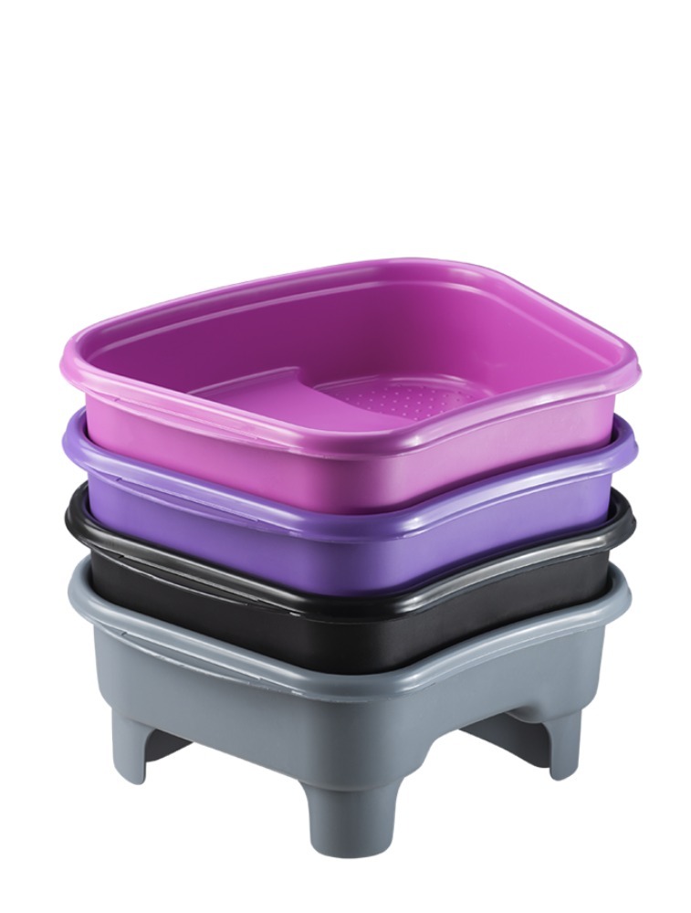 Possui formato anatômico, com amplo espaço para acomodação dos pés. A textura em contato com a sola dos pés tem formato de micro esferas, que promovem conforto e relaxamento da pele. Fabricada em material de alta resistência a produtos químicos, facilita a limpeza e confere durabilidade. Destaque para o pedestal incorporado a base que aumenta a distância do piso para manter a temperatura ideal da água por mais tempo.