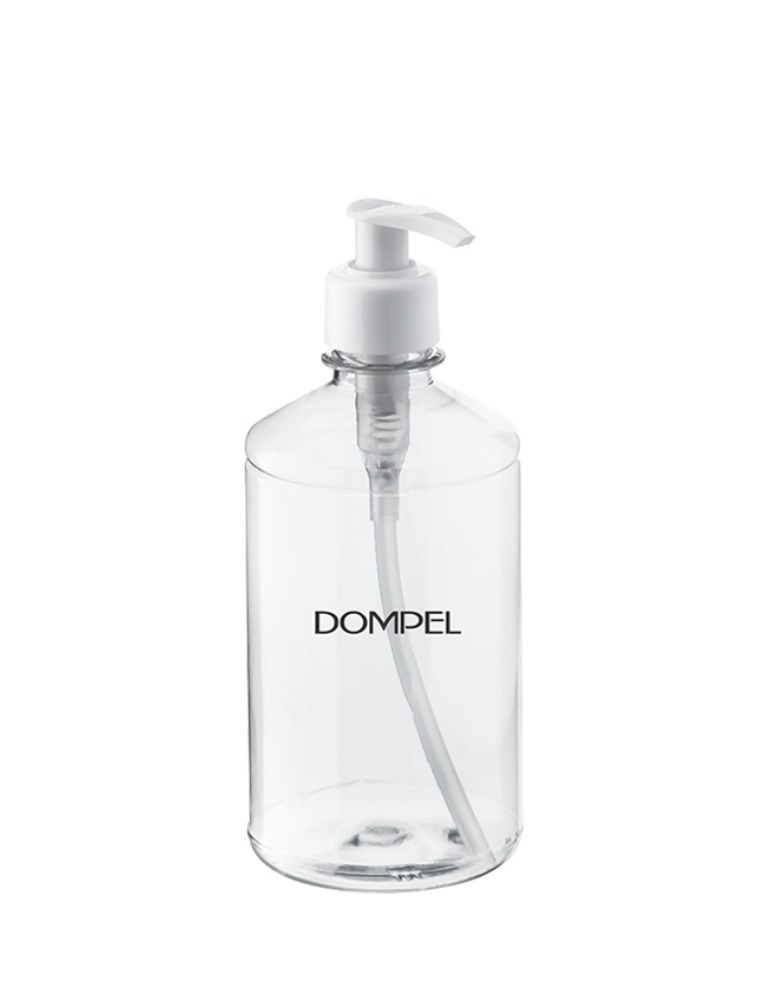 O frasco com Válvula Pump Dompel possui design clássico e acabamento de alta qualidade. Sua válvula em formato de “bico de pato” facilita na dosagem do produto. Fabricado em material PET transparente, possui capacidade de 500ml. Comporta produtos líquidos e em gel.