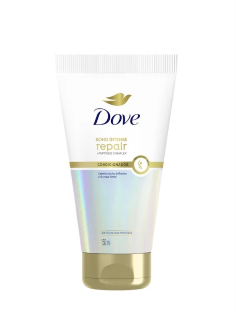 O Condicionador Dove Bond Intense Repair possui a nova tecnologia patenteada Bio-Protein Care, proteína 100% compatível com a estrutura natural do cabelo, que age em harmonia com a biologia capilar e reverte os sinais do dano; e Peptídeo Complex, microcomponentes da proteína que conseguem atingir as camadas mais internas da fibra para restaurar as ligações rompidas a nível molecular. Juntos, reparam os sinais de dano dos fios a nível molecular desde o primeiro uso. A fórmula deste condicionador reconstrutor capilar possui uma textura cremosa que hidrata em profundidade enquanto repara a fibra capilar, para cabelos macios, saudáveis e brilhantes. O condicionador Dove Bond Intense Repair entrega nutrição para os cabelos, deixando-os 10x mais fortes*, 100% mais macios e com brilho extra. Modo de uso: após o uso do shampoo, aplique sobre todo o comprimento dos fios, até as pontas. Deixe agir por um minuto e enxágue.