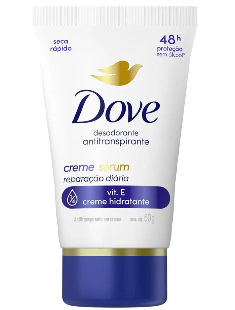 Desodorante Dove Creme Sérum Reparação Diária 50g, proporciona até 48 horas de proteção contra suor e odor, com a fragrância suave e tradicional de Dove Original. Enriquecido com ¼ de creme hidratante e vitamina E, ajuda a acalmar a pele após a depilação e é ideal para o cuidado da pele delicada das axilas.