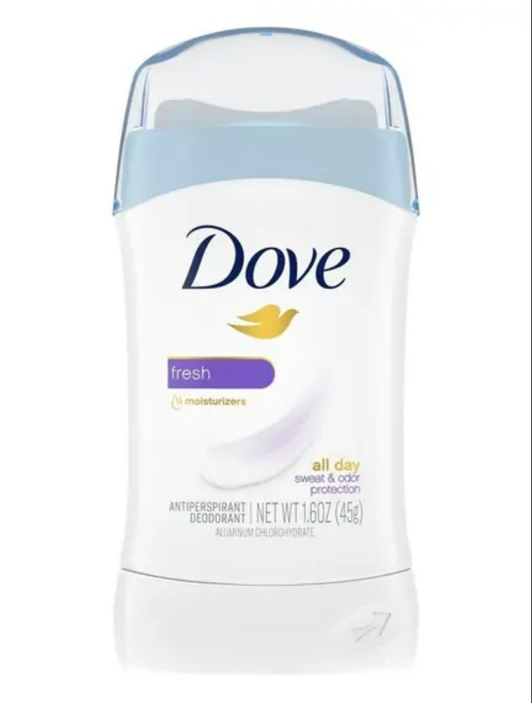 O Desodorante Antitranspirante Stick Dove Fresh possui fórmula com de creme hidratante e 0% álcool