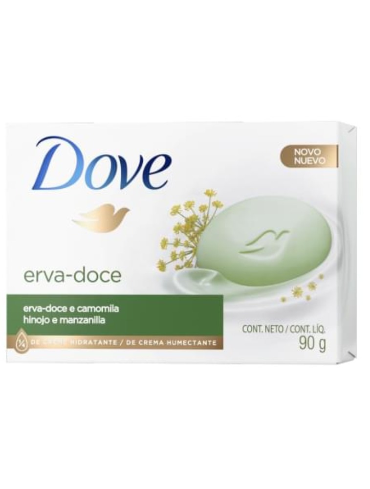 O Sabonete em Barra Dove Erva-doce contém 1/4 de creme hidratante e agentes de limpeza suaves que ajudam a manter a hidratação natural da pele. Com tecnologia de limpeza Syndet e pH neutro, que ajuda a manter a barreira de proteção natural da sua pele saudável, o sabonete Dove Erva-doce proporciona um banho com a agradável fragrância e frescor da erva-doce.