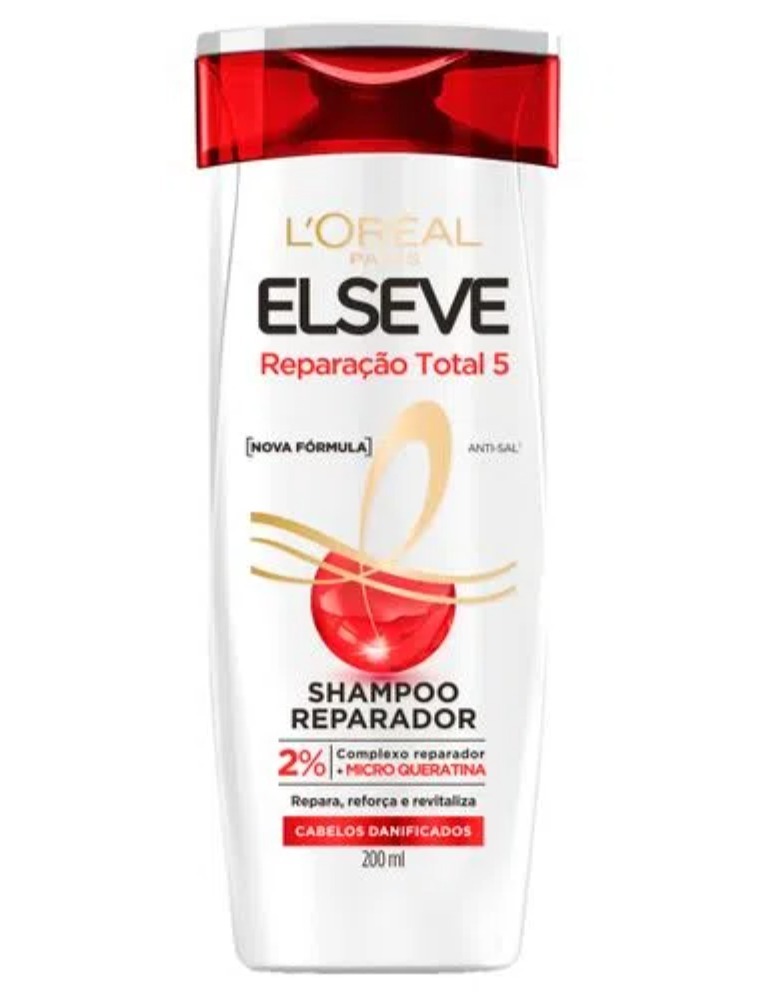 A nova linha Elseve Reparação Total 5 faz uma reparação total dos 5 sinais de danos para um efeito de plástica capilar. São eles a quebra, a rigidez, a opacidade, o ressecamento e as pontas duplas.