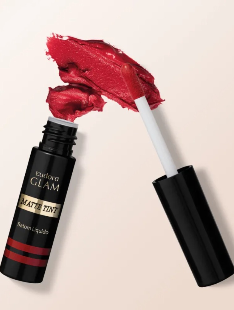 Batom líquido com acabamento matte. Eudora Glam Matte Tint garante 18 horas de duração, sem retoque e agora com ativos de tratamento!