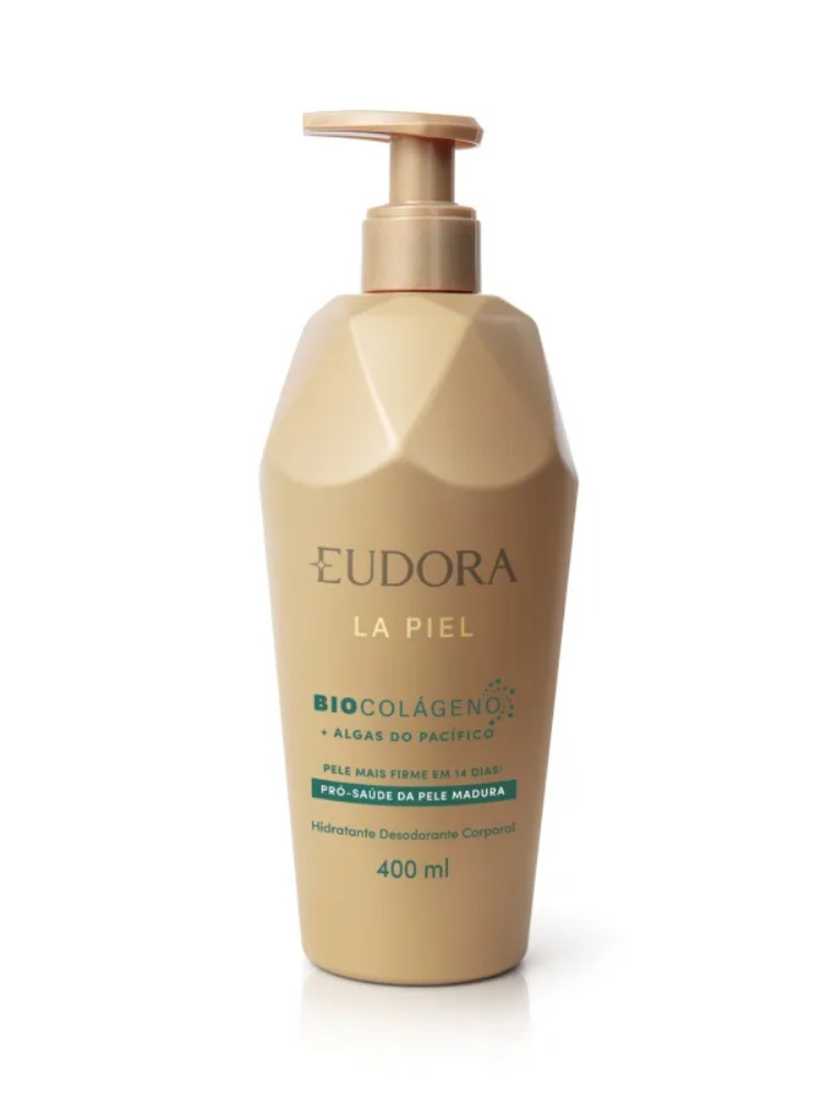 Eudora La Piel Algas do Pacífico Loção Corporal é um cuidado especial para a pele madura. Sua fórmula vegana com Niacinamida, Pantenol e Biocolágeno, estimula a produção natural de colágeno, melhorando a sustentação e firmeza da pele em 14 dias. Oferece hidratação nutritiva por até 48 horas, reduzindo o ressecamento e melhorando a textura. Dermatologicamente testado e comprovado em pele madura, combina tratamento com uma fragrância sofisticada Oriental fresca. Agora você pode perfumar e tratar sua pele ao mesmo tempo.