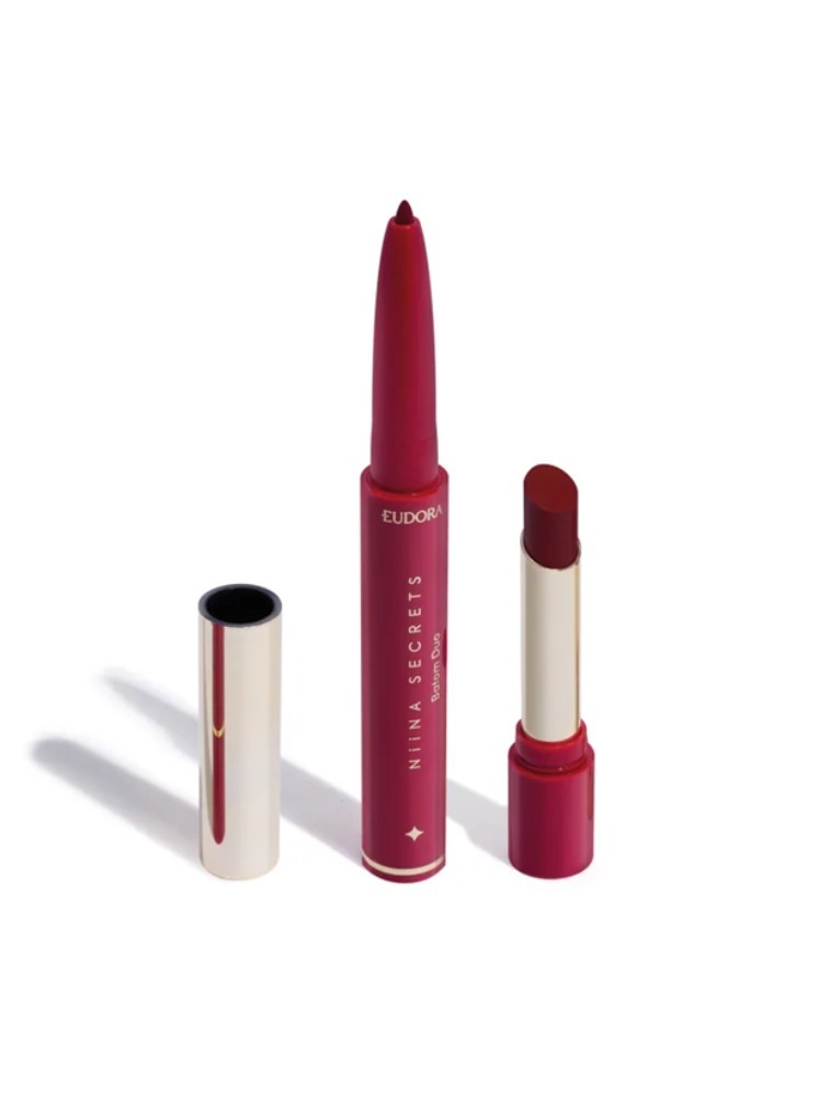 Batom Duo Perfect Match Niina Secrets traz o lapiseira delineadora para um contorno preciso e Batom Stick Ultracremoso para um preenchimento total da coloração dos lábios. Sinta a diferença de lábios realçados, com cor intensa.