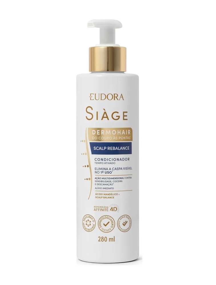 O Condicionador Siàge Dermo Hair Scalp Rebalance promove um couro cabeludo saudável e fios hidratados. Sua fórmula com Ácido Mandélico e Scalp Balance, tecnologia prebiótica e probiótica, oferece uma ação multidimensional que combate a caspa no cabelo, a oleosidade, a sensibilidade, a coceira e a descamação, enquanto proporciona hidratação e maciez aos fios.