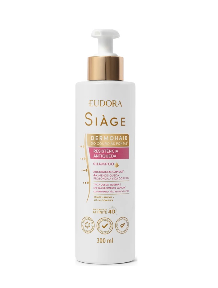 O Shampoo Para Queda de Cabelo, Siàge Dermo Hair Resistência Antiqueda, promove limpeza eficaz sem ressecar os fios e auxilia no tratamento completo para cabelos mais fortes, saudáveis e resistentes à queda. Sua fórmula com Minoxi-Amenil e Vit-10-Complex age diretamente na raiz do problema, promovendo uma ação multidimensional: atua proporcionando um efeito ancorador contra a queda natural enquanto trata o comprimento do fio combatendo a quebra. Garante resultados eficazes desde o primeiro uso.*