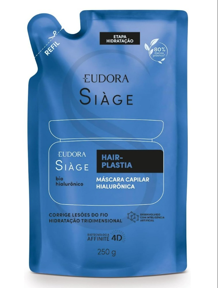 O Refil de Máscara Capilar Eudora Siàge Hair-Plastia promove um tratamento poderoso para deixar os fios mais encorpados e extremamente macios. Oferece hidratação tridimensional, que age em todas as camadas do fio, elimina a porosidade e retém a água na fibra capilar, mantendo o cabelo hidratado por mais tempo.