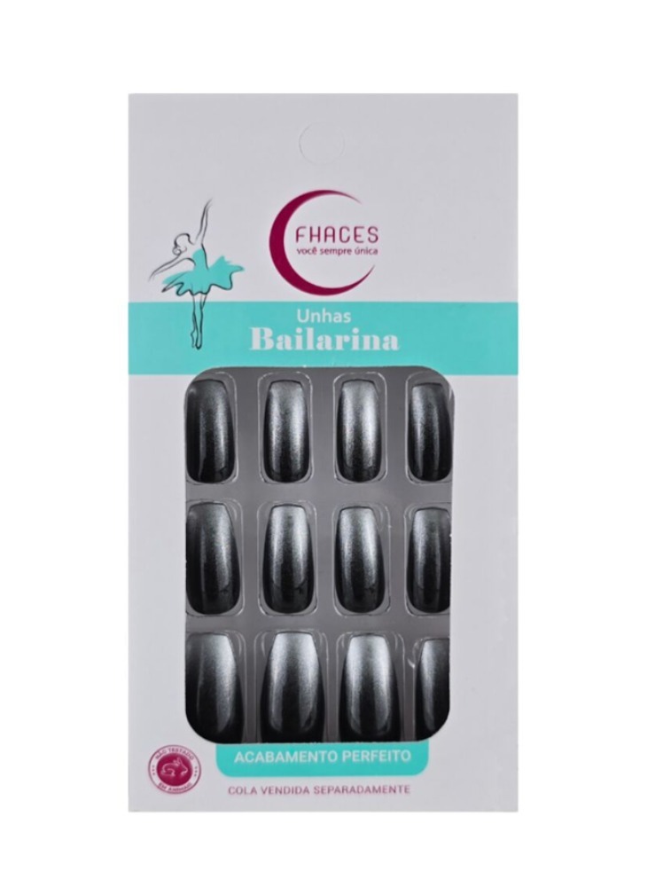 FHACES UNHAS BAILARINA PRETA PONTA PRATA METALICA