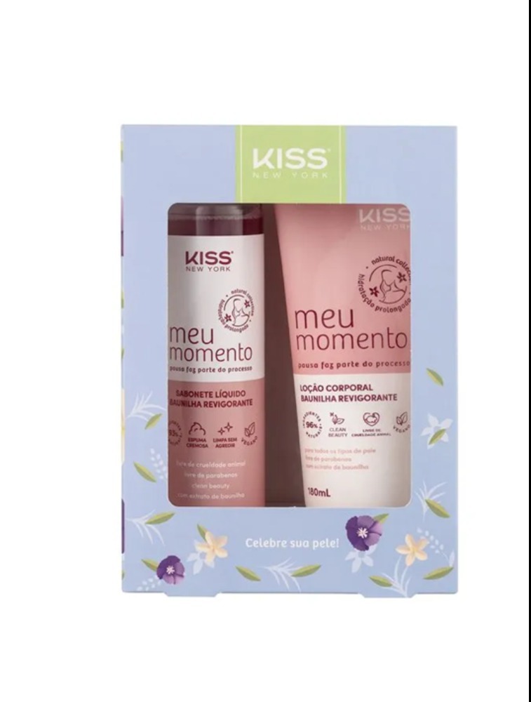 Natural Collection é uma linha de cuidados corporais com ingredientes de origem natural e formulação limpa, que entende o quão importante é você cuidar da pele e celebrar momentos só seus! O Sabonete Líquido meu momento, possui uma formulação de 93.9% , ja a Loção Corporal Meu Momento da Kiss New York, possui 96% dos ingredientes de origem natural, além de ser Clean Beauty, sendo livre de silicones, parabenos e petrolatos. Com uma espuma cremosa, nosso sabonete corporal limpa enquanto hidrata, deixando a pele com um toque aveludado e leve. Possui uma fragrância cítrico adocicado de baunilha revigorante, que ajuda no ânimo das manhãs e estimula a sensação de conforto. Além disso, sua formulação é vegana e livre de crueldade animal.