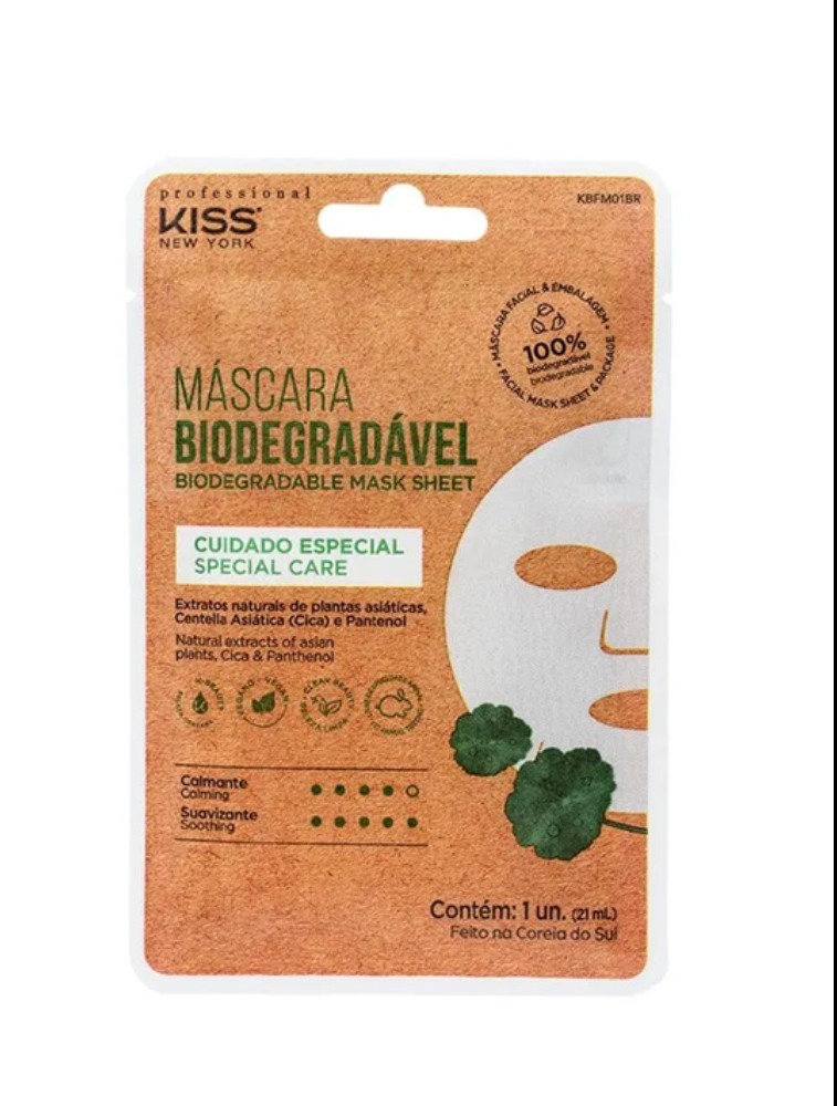 A Máscara Facial Biodegradável para Cuidado Especial é feita com tecido de fibra natural e embalagem biodegradável sendo mais sustentável, pois se decompõem mais rápido poluindo menos o meio ambiente. É formulada com Centella asiática, Pantenol e Extratos de plantas asiáticas que ajudam acalmar e suavizar a pele, hidratando profundamente, reparando e acalmando a pele irritada e deixando a pele com uma aparência mais saudável. É fabricada na Coreia do Sul (K-Beauty), garantindo maior inovação e tecnologia. Sua formulação é Clean Beauty (Beleza Limpa) contendo apenas ingredientes seguros, não tóxicos e completamente livres de produtos químicos nocivos à pele como parabenos, sulfatos, ftalatos, polietileno, polipropileno, formaldeído, triclosano, tolueno, corantes artificiais e filtros solares químicos (oxibenzona, avobenzona e octinoxato). Além disso, é vegana e livre de crueldade animal.