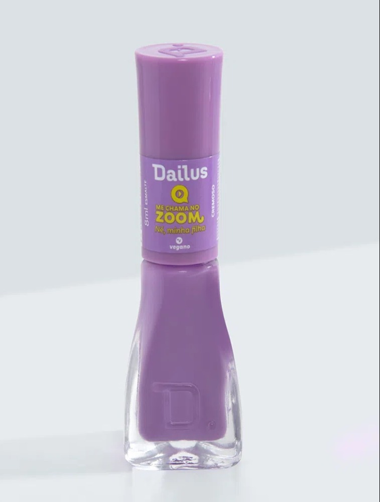 Vem namorar com a gente esse tom de roxo, que transmite a sensibilidade e inspira a nossa criatividade! Com uma pegada cibernética, essa cor é fácil de combinar, dá um toque feminino ao visual e ganhou o nome NÉ, MINHA FILHA?, que representa aquela saudade de aglomerar a dois na quarentena. O vidrinho faz parte da coleção ME CHAMA NO ZOOM, tem fórmula vegana, acabamento cremoso e alta cobertura. A dupla anatômica + pincel big flat brush é implacável, nossa grande aliada para facilitar a aplicação. Partiu webnamorar de unhas feitas?