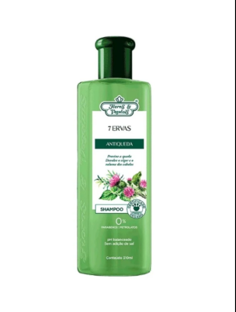 O Shampoo Antiqueda Sete Ervas Flores & Vegetais possui fórmula com complexo vegetal ativo (Bardana, Capsicum, Hipérico, Mutamba, Quina, Mirra e Zimbro) que reúne todas as propriedades necessárias para tratar cabelos com problemas relacionados à queda. Lava com suavidade, sem irritar o couro cabeludo, permite o uso frequente, dá vigor, volume e beleza aos cabelos, deixando-os com aspecto saudável e natural.