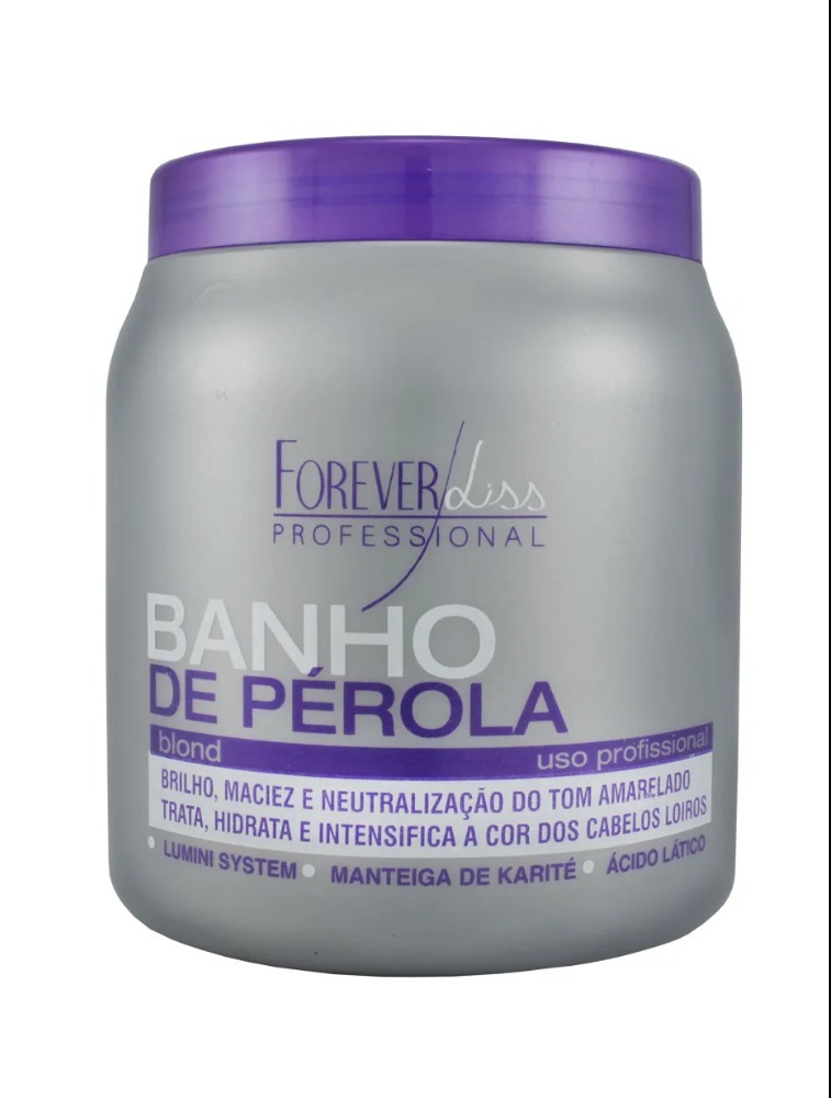 A Máscara Banho de Pérola Blond 1KG Forever Liss vai promover loiro perolado brilhante ainda mais poderoso, além de reunir tecnologias como Lumini System, Manteiga de Karité e Ácido Lático que garantem a proteção da fibra capilar, desfazendo e evitando o amarelamento dos fios, para um loiro perolado matizado e com muito mais brilho. Com um poder de hidratação intenso, fortalece a fibra capilar e recupera a resistência dos cabelos. O Banho de Pérola traz vida nova ao seu loiro, iluminando os cabelos e deixando-os saudáveis, macios e sedosos como nunca!