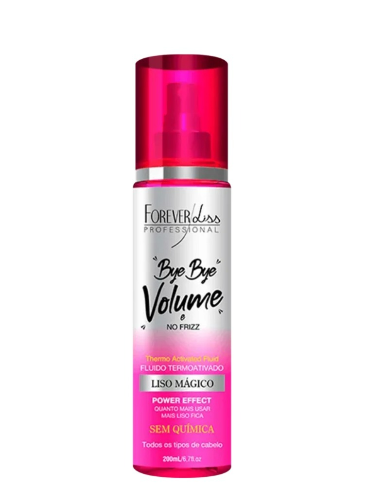 Protetor térmico para todos os tipos de cabelo. Forever Liss Professional Bye Bye Volume e No Frizz Liso Mágico proporciona desembaraço imediato, sela as cutículas, remove pontas duplas proporcionando ultra brilho.