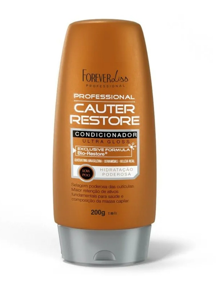 O Condicionador Cauterização Cauter Restore 200g possui fórmula especial à base de geleia real, ceramidas e Queratina brasileira. Promove a estruturação da fibra capilar, regenerando os fios ressecados e fragilizados por química. Facilitando o pentear e selando completamente as cutículas deixando os fios mais emoliente, com brilho e maciez.