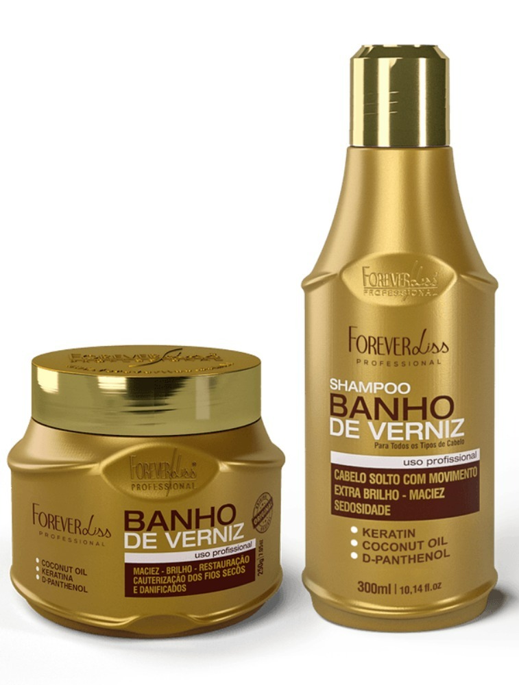 O Kit Especial Banho de Verniz Forever Liss com Shampoo e Máscara recupera e trata cabelos danificados, opacos e sem vida. Higieniza, nutre e hidrata os cabelos, devolvendo a força e resistência.