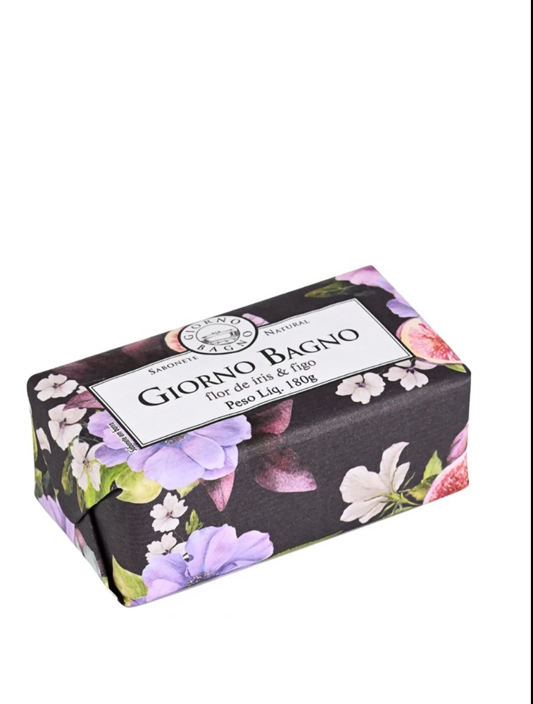 Giorno Bagno Flor de Íris e Figo é um sabonete 100% vegetal, inspirado nos sabonetes italianos e cuidadosamente embrulhado à mão. Possui muita cremosidade, proporcionando hidratação extra e de longa duração.