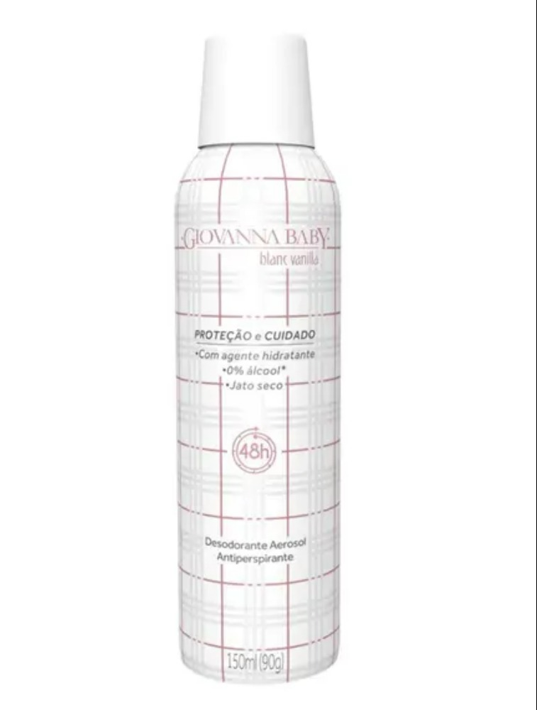 O Desodorante Aerosol Antiperspirante Jato Seco Giovanna Baby Blanc Vanilla é elaborado com ingredientes ativos que garantem total proteção contra os odores da transpiração, deixando um suave perfume e promovendo uma sensação de frescor o dia todo.