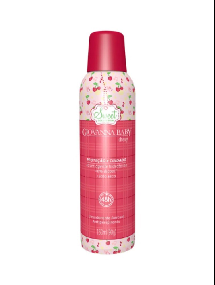 O Desodorante Aerosol Antiperspirante Jato Seco Giovanna Baby Cherry é elaborado com ingredientes ativos que garantem total proteção contra os odores da transpiração, deixando um suave perfume e promovendo uma sensação de frescor o dia todo. A fórmula do desodorante aerosol Giovanna Baby é composta por agentes hidratantes para dar um toque de suavidade e maciez ao seu corpo.