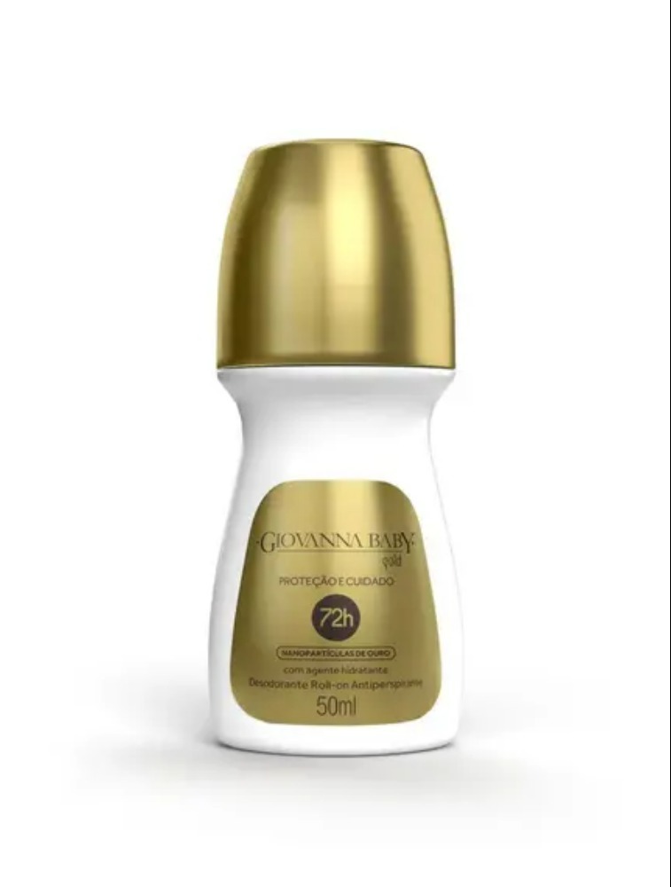 Desodorante Roll-On Giovanna Baby Gold 50mlOs desodorantes roll-on da linha Metais Nobres também asseguram 72 horas de proteção antiperspirante intensiva, além de promover hidratação e bem-estar para a pele. As nanopartículas de ouro e prata garantem efeito prolongado e conforto imediato.Elaborado com tecnologia inovadora, o Desodorante Antiperspirante 72h GOLD possui nanopartículas de ouro que garantem performance superior e ação potencializada na proteção contra os odores da transpiração, promovendo uma perfumação suave e uma sensação de frescor por todo o dia.Proteção 72 horas, perfumação exclusiva e hidratação prolongada.Sobre a Giovanna BabyO que define o público é a identificação que as mulheres têm com a marca, capaz de oferecer produtos exclusivos, com um clima de magia e puro encantamento.Com uma história de encantamento, a marca Giovanna Baby cresceu, ganhou novas fragrâncias e uma gama maior de produtos.Suas fragrâncias, inspiradas em buquês internacionais, proporcionam deliciosas viagens pelos sentidos.Lindos e maravilhosos produtos, delicadeza, elegância e puro encanto em cada detalhe!