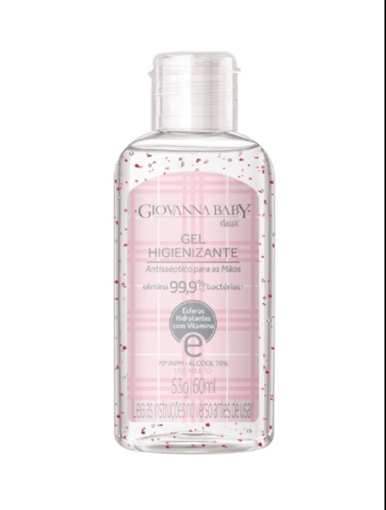 O Álcool em Gel Higienizante Giovanna Baby é um excelente produto para higiene pessoal das mãos. Seca instantaneamente, deixando uma sensação de limpeza e toque aveludado com suave perfume, sem ressecar e sem deixar as mãos pegajosas. Vitamina E + esferas hidratantes